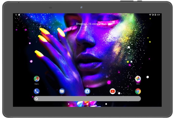 Le modèle, qui dispose d'une batterie capacitive de 5000 mAh, prend en charge Internet haut débit. L'appareil est équipé d'un processeur quadricœur MediaTek MT8735 avec une fréquence de fonctionnement de 1000 MHz, ce qui vous permet d'installer et d'exécuter de petits jeux. La quantité de mémoire interne est de 16 Go, opérationnelle - 1 Go, il y a un support pour les cartes mémoire microSD, jusqu'à 128 Go.La tablette dispose d'un système d'exploitation Android 7.0, d'un écran de dix pouces avec une résolution de 1280 × 800, équipé d'une matrice IPS et offre un grand angle de vision. Le coût moyen d'une tablette est de 6 490 roubles.