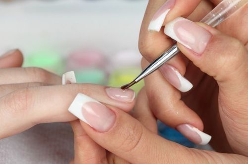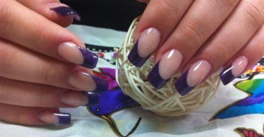 La manucure française est très courante. C'est l'un des types de revêtement (vernis ou gel).L'ongle n'est pas recouvert de tons vifs de rose ou de beige, et le bord libre de l'ongle est recouvert de blanc en forme de sourire.