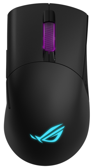Pour une glisse en douceur, le manipulateur est équipé d'un ROG Paracord flexible et de pieds arrondis en Téflon. Son bord ondulé est décoré d'une gravure au laser et d'un éclairage élégant. Ce modèle est fabriqué dans un boîtier traditionnel, qui a un facteur de forme asymétrique, qui est préféré par les droitiers. Pour rendre plus confortable la réalisation de mouvements instantanés et précis, le modèle pèse 30% de moins que son prédécesseur. La souris est connectée par l'une des 3 options possibles : via un canal radio haut débit fonctionnant à une fréquence de 2,4 GHz, Bluetooth LE économe en énergie ou un câble USB. Le capteur de type optique de haute qualité assure une grande précision de la désignation du curseur. Il a une résolution allant de 100 à 26 000 DPI et peut également surveiller le mouvement à 400 pouces par seconde avec jusqu'à 50 g d'accélération. Le taux d'interrogation, qui est égal à 1 000 Hz (lorsqu'il est connecté via un port 2,4 GHz et USB), assure la réactivité la plus rapide de l'appareil.