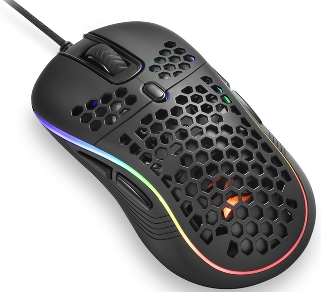 Ce modèle allie légèreté et ergonomie réfléchie à un design multifonctionnel adapté aux mains gauche et droite. De par sa structure en nid d'abeille, ce manipulateur gamer garantit une bonne prise en main et une parfaite légèreté. Le modèle ne pèse que 78 g, ce qui assure une facilité d'utilisation lors de longues sessions de jeu ou de travail.