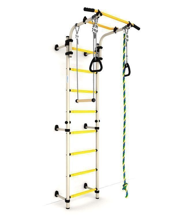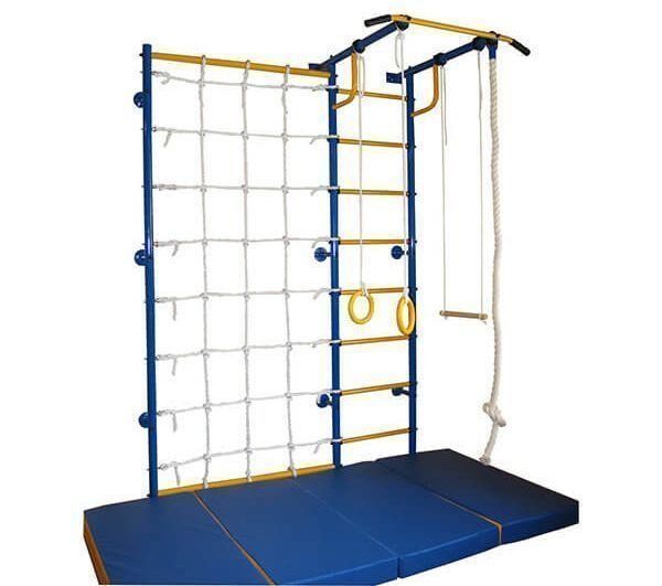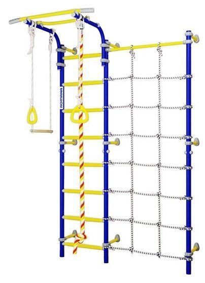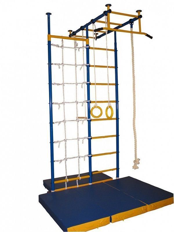 Le complexe se compose d'une barre horizontale, d'anneaux de gymnastique, d'une corde, d'un trapèze. Convient aux enfants à partir de 1,5 ans et est conçu pour un poids maximum de 200 kg.