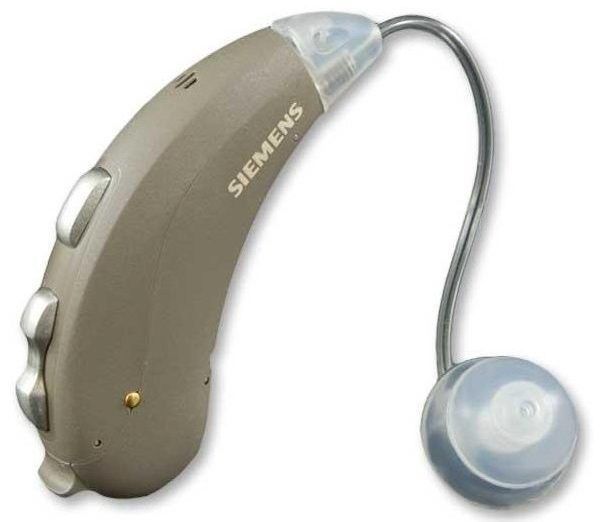 Prothèse auditive contour d'oreille. Le traitement des signaux audio s'effectue en mode numérique avec un niveau d'intensité de sortie surpuissant. Régulation rationnelle de la RAM et faible consommation de courant. L'appareil peut fonctionner sur un accumulateur pneumatique Siemens pendant plus de 35 jours.