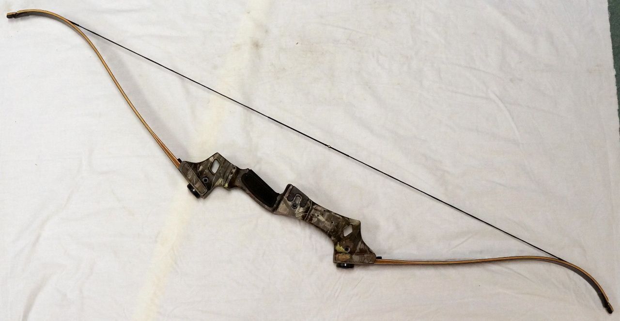 Grand arc classique avec un bon ensemble d'accessoires. Fabriqué en Taïwan. Fabriqué à partir de matériaux naturels. Le manche est en bois et recouvert d'éléments multicouches pliés et collés. Grâce à ces éléments, l'arc devient durable et résistant à l'usure. Il peut être plié en trois parties pour un transport facile.