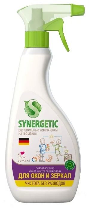 Un autre produit représentant des produits écologiques pour nettoyer tous les types de surfaces en verre, y compris les fenêtres en plastique. Le spray se compose d'un liquide clair avec un atomiseur qui fonctionne en deux modes. Tous les composants de Synergetic sont naturels, le produit est donc sans danger pour la santé. Le parfum du produit est floral, discret. Il n'a pas besoin d'être lavé, il suffit de l'enlever de la surface avec un chiffon sec.