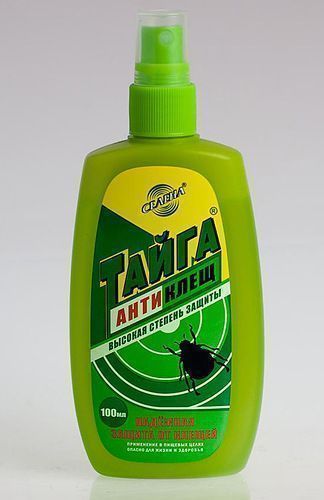 Spray répulsif fiable qui repousse tous les types d'acariens parasites existants des humains. Le but de ce médicament est une protection à cent pour cent contre les prédateurs suceurs de sang. Il est appliqué sur la peau ou sur les éléments de garde-robe existants d'une personne. Des expériences avec l'application de cet agent ont montré qu'après quelques minutes de contact avec les choses traitées, les acariens sont tombés, perdant leur capacité à sucer. Prix moyen : à partir de 205 roubles.