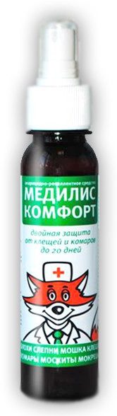 Formule de pulvérisation répulsive conçue pour repousser les acariens suceurs de sang des types forêt, steppe, taïga, avec un cycle d'effet protecteur allant jusqu'à 5 heures lorsqu'il est appliqué sur la peau et jusqu'à 4 jours lorsqu'il recouvre les articles de garde-robe avec le produit chimique. Prix moyen : à partir de 150 roubles.