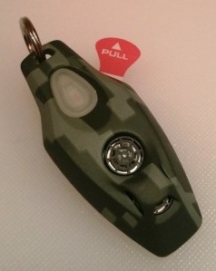 Le porte-clés camouflage est composé de polycarbonate et de résine synthétique anti-allergique. L'appareil repousse non seulement les tiques, mais également les puces à l'aide d'une onde ultrasonique dont le rayon atteint 3 mètres. Le boîtier est étanche, mais pas étanche. L'appareil fonctionne à partir de la batterie intégrée qui dure 10 à 12 mois.