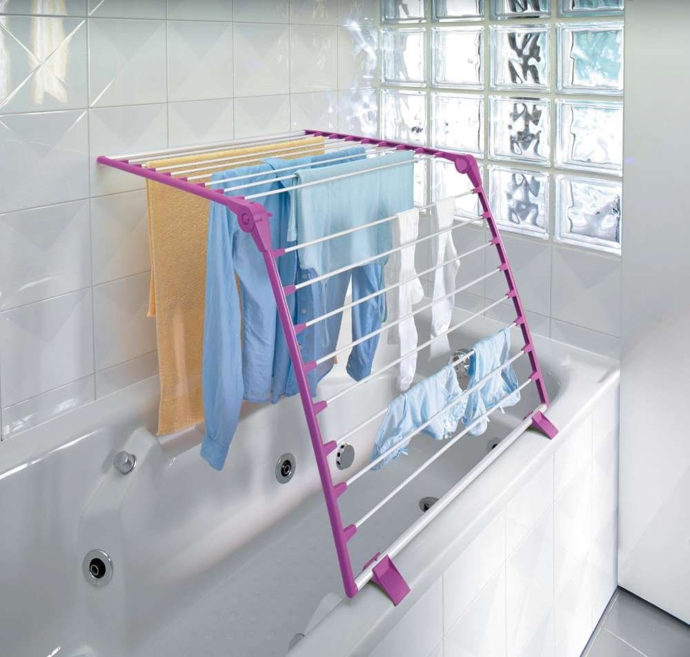 - Si vous devez sécher des tissus délicats ou des produits en laine qui craignent l'extraction mécanique, vous devriez envisager l'option d'un sèche-linge installé sur la baignoire afin que l'eau puisse s'écouler librement des produits sans endommager le sol.