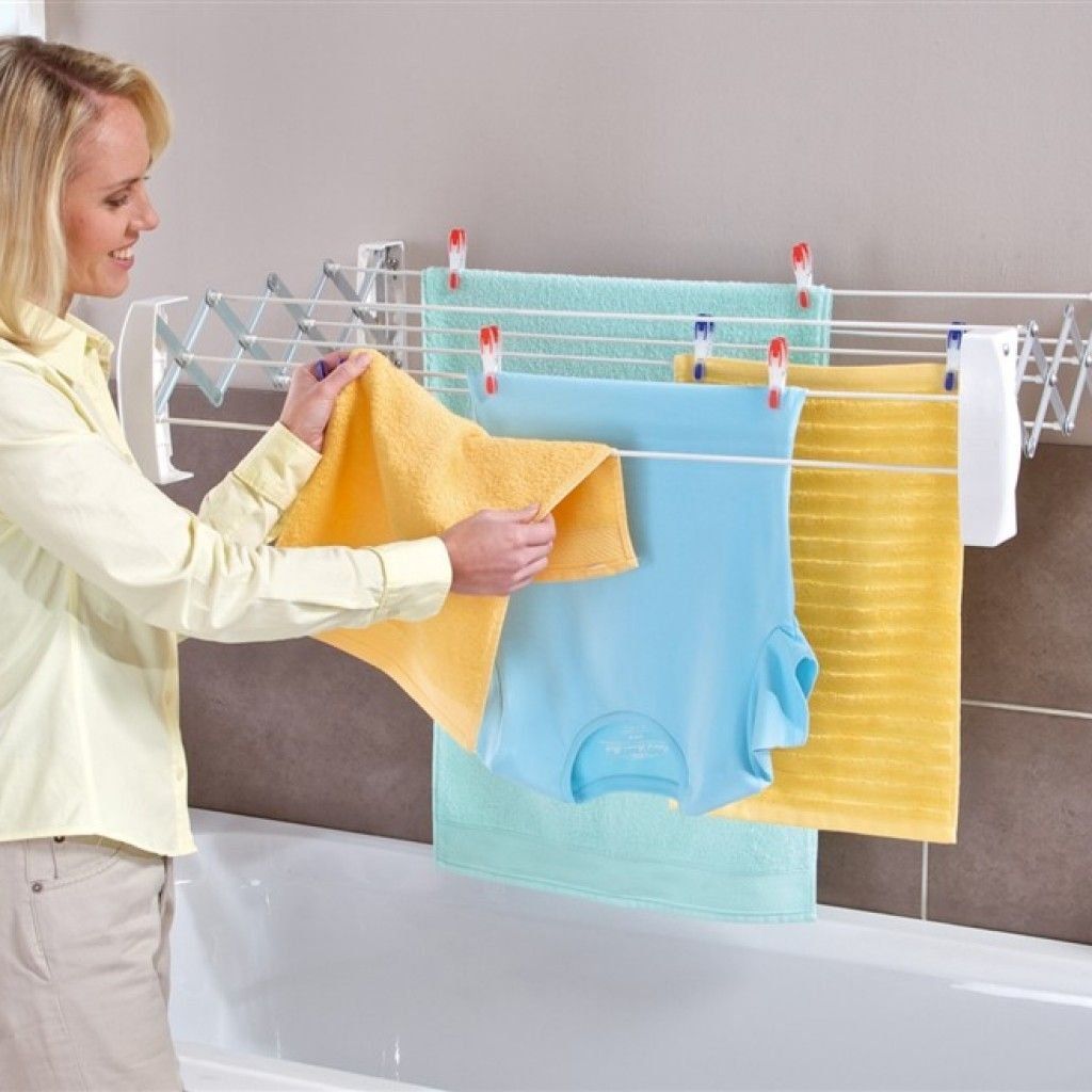 Le sèche-linge mural est représenté par un modèle en forme d'accordéon et a différentes dimensions.