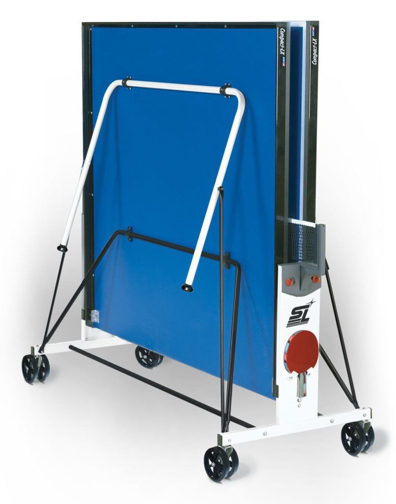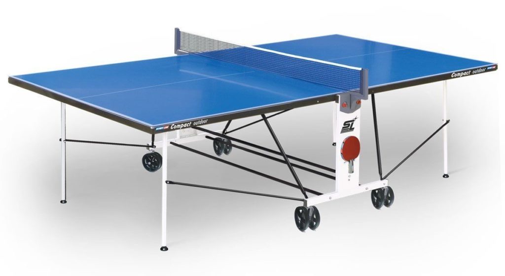Cette table pliante est assez compacte. Convient pour une utilisation en intérieur uniquement. Le filet inclus dans le kit vous permet de démarrer le jeu immédiatement après l'achat. Produit en Russie selon la technologie allemande. Il y a 4 petites roues pour le transport.