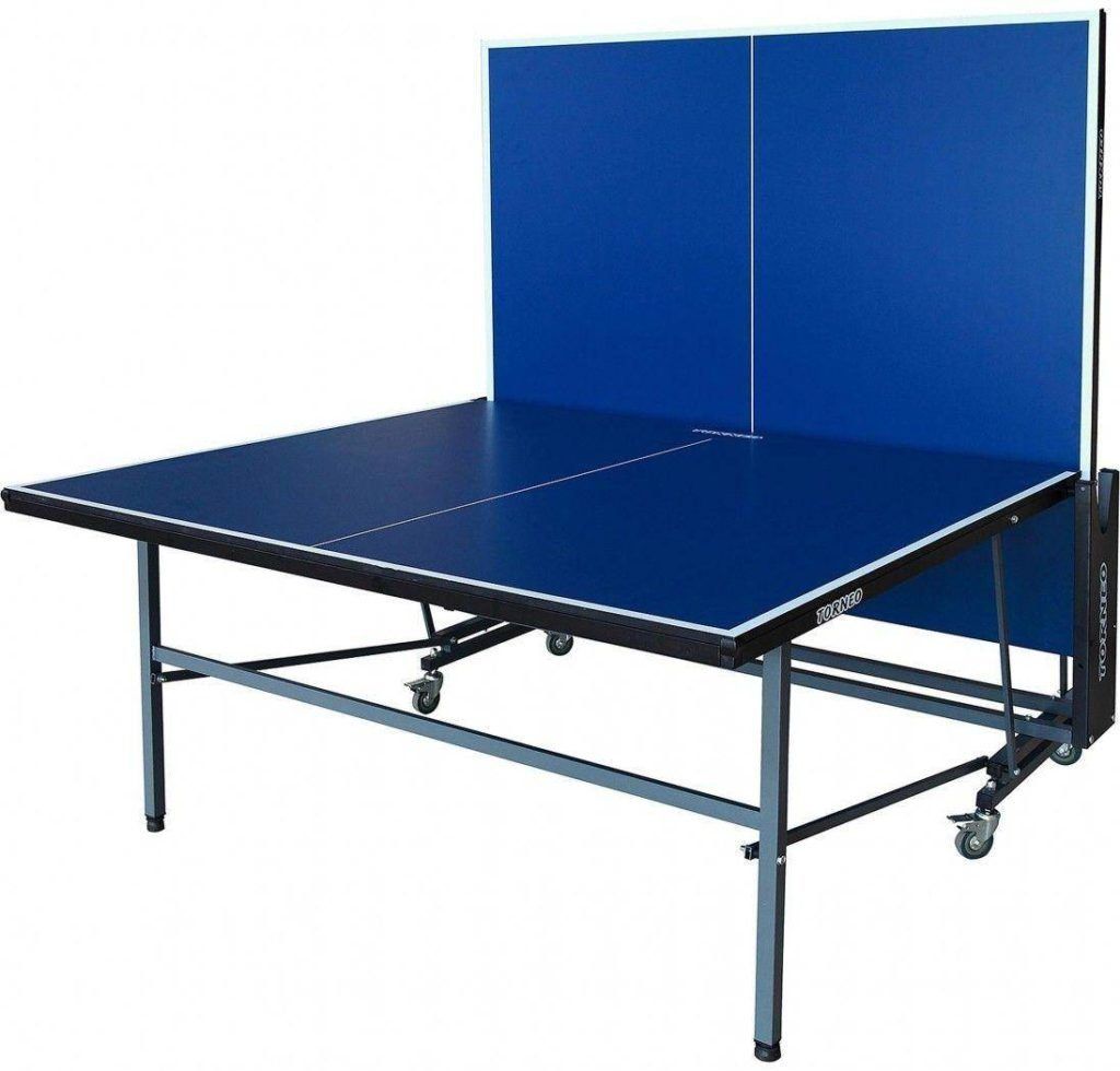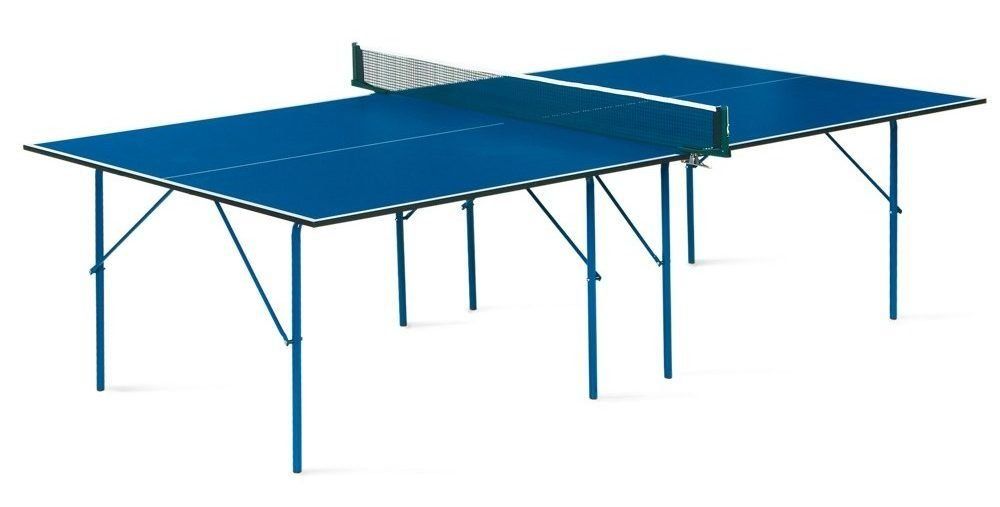 La table appartient à la catégorie semi-professionnelle, conçue pour une utilisation en intérieur. Vous pouvez choisir la couleur du modèle - bleu, noir ou blanc. Le fabricant de tables domestique travaille selon la technologie allemande. La différence de ce modèle est la double fixation de la table sous forme assemblée. La hauteur des pieds est réglable, ce qui permet même aux enfants de jouer. La table est équipée d'un support pratique pour ranger les raquettes et est équipée de 4 roulettes pour le transport. La grille est intégrée dans la table, qui dispose d'un mécanisme de tension spécial.