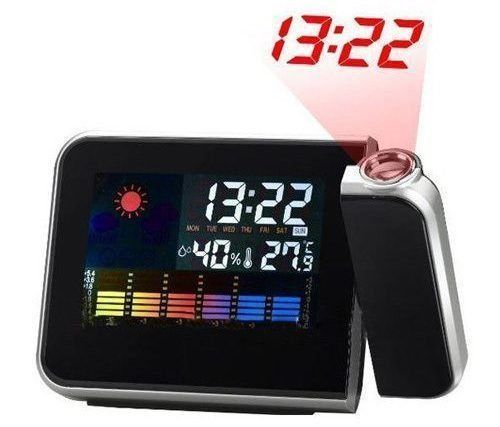 Station numérique météorologique domestique avec sortie des paramètres de température et de temps au plafond ou au mur. Le gadget original est fabriqué dans un design ergonomique et compact. Son alimentation provient de piles rechargeables. Produit et affiche des calculs : heure, date, température et humidité de l'air intérieur et extérieur. La portée de son capteur sans fil en espace ouvert est jusqu'à 42 mètres. Prix moyen : à partir de 1880 roubles.
