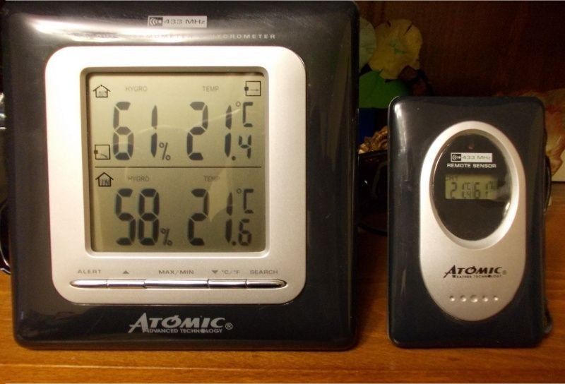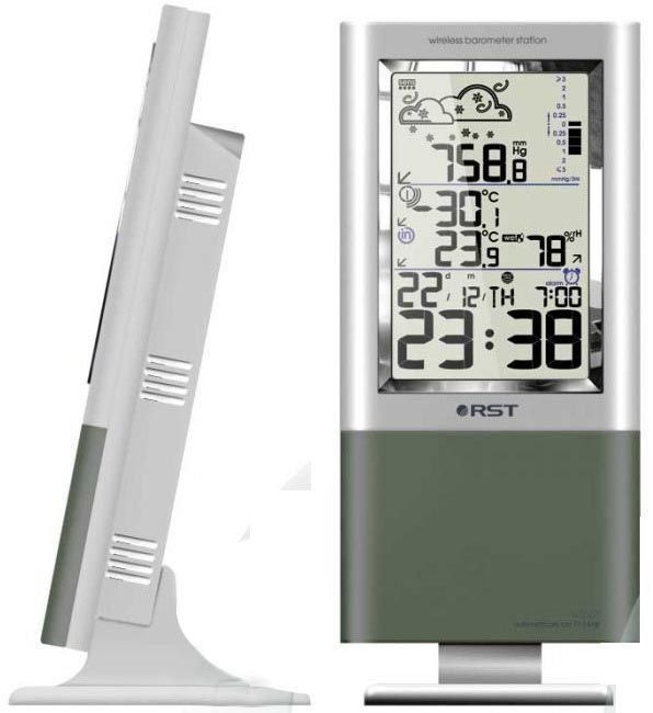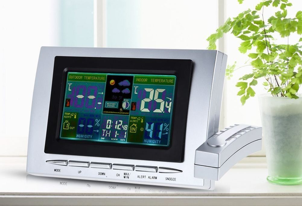 Gadget numérique météorologique qui vous permet d'obtenir des informations météorologiques à jour. Mesure les paramètres de température et d'humidité de l'air à l'intérieur et à l'extérieur. Enregistre ses valeurs maximales et minimales. Un capteur radio sans fil avec un capteur thermique mesure tous les indicateurs météorologiques nécessaires à une distance allant jusqu'à 40 mètres. Il a des fonctions secondaires sous la forme de : une horloge, un réveil et un calendrier automatique jusqu'en 2099. Prix moyen : à partir de 3600 roubles.
