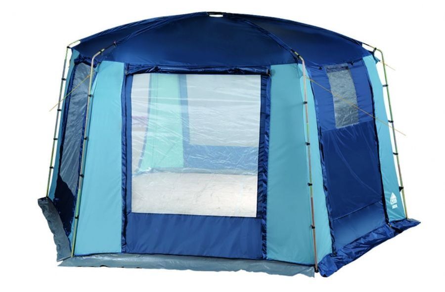 Il peut accueillir plus de 10 personnes. Peut être utilisé comme mini cabane. Pèse 8,4 kg. A 2 entrées. Résistance moyenne à l'eau - jusqu'à 2000 mm. Type de cadre - externe, composé de 7 arcs. Le store est en polyester. Le cadre est en acier. Il en coûte environ 7000 roubles. Parmi les options supplémentaires, il y a une moustiquaire et un crochet pour une lanterne.
