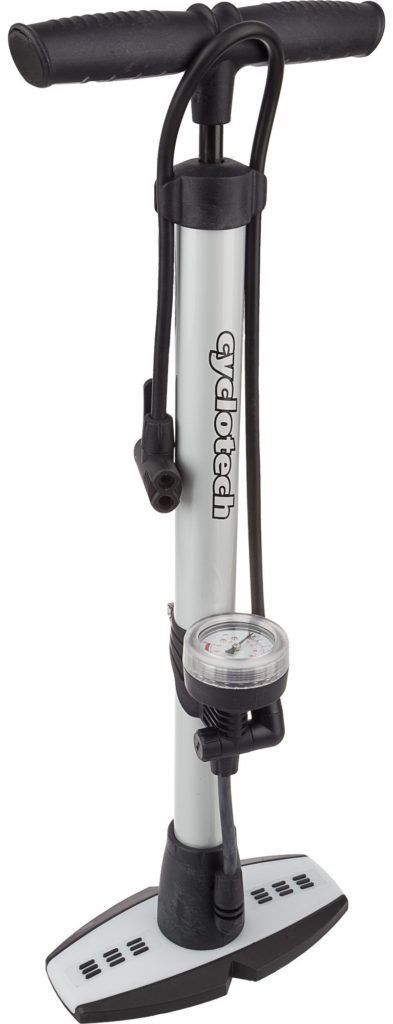 Cette pompe à essence est l'appareil le plus fonctionnel parmi les pompes de ce type. Les pneus peuvent être gonflés avec une cartouche de gaz ultra-légère. La poignée en T vous permet de fixer la pompe au vélo aussi fermement que possible.Le manomètre intégré vous permet de déterminer à quelle pression les pneus sont gonflés. L'achat de cette pompe est un plaisir coûteux, car vous devez également acheter une bouteille de gaz. Seulement pour 1-2 pompage des roues suffit d'une telle pompe. Ce type appartient à la catégorie des pompes pneumatiques. Coûte environ 20 $.