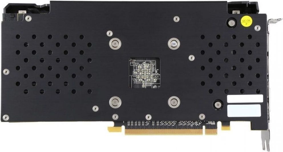 Cette carte vidéo présente également des avantages par rapport au leader de ce classement.Il est équipé de trois ports d'affichage. Cependant, la carte vidéo ne prend pas non plus en charge l'interface VGA. De plus, le dos de la planche est protégé par une plaque spéciale, grâce à laquelle la conception acquiert une rigidité supplémentaire, qui la protège des influences extérieures.