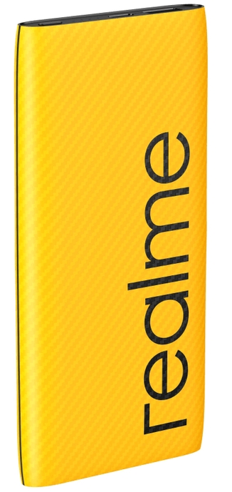 2 batteries lithium-polymère haute densité intégrées rendent le processus de récupération de charge fiable et efficace. La grande capacité de l'appareil (10 000 mAh) permet de charger plusieurs fois différents gadgets. La texture en fibre de carbone de l'extérieur du modèle confère au boîtier un effet visuel unique. La palette de couleurs jaunes traditionnelles de Realme et le logo de l'entreprise rendent l'accessoire lumineux et à la mode.