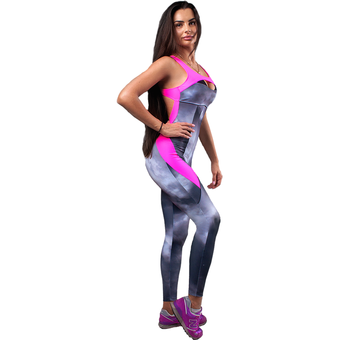 Combinaison élégante avec un imprimé inhabituel. Le matériau vous permet de vous engager confortablement dans la salle de sport, car l'humidité s'évapore assez rapidement. Cependant, ne gelez pas pendant l'exercice à l'extérieur.