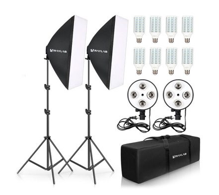 | Équipement | Softbox pliante avec une cartouche E27 de 50x70 cm - 2 pcs. Lampes 85 W E27 fluorescentes - 2 pcs. Supports de studio 2 m - 2 pcs. Sac de rangement et de transport. |