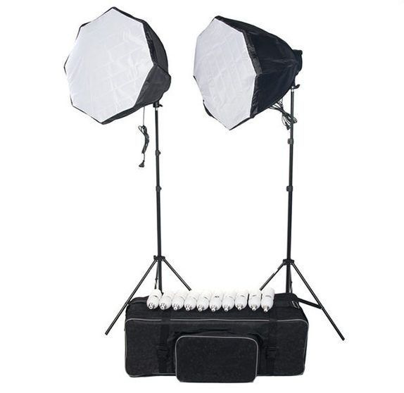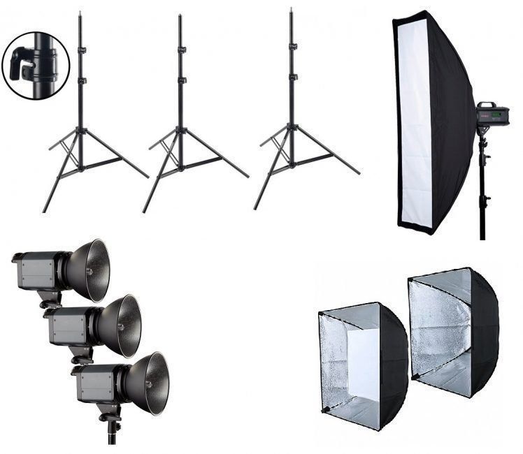 L'ensemble fonctionne sur la base de lampes fluorescentes de 85 W et de boîtes à lumière de 50 x 70 cm. Conçu pour les portraits et les photos de produits, ainsi que pour la réalisation de courtes vidéos. Convient pour une utilisation par des photographes professionnels et des photographes amateurs. L'équipement a une puissance moyenne de 170 W et une température de couleur optimale de 5500K.