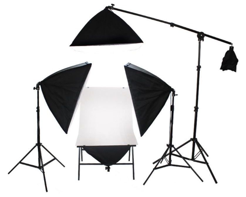 | Équipement | Tableau photo 100x60x55 cm - 1 pc. Boîte à lumière 50x70 cm - 4 pièces Lampe 155 W 5500 K - 4 pièces. Rack 2,1 m - 3 pièces Grue à barre transversale - 1 pc. |
