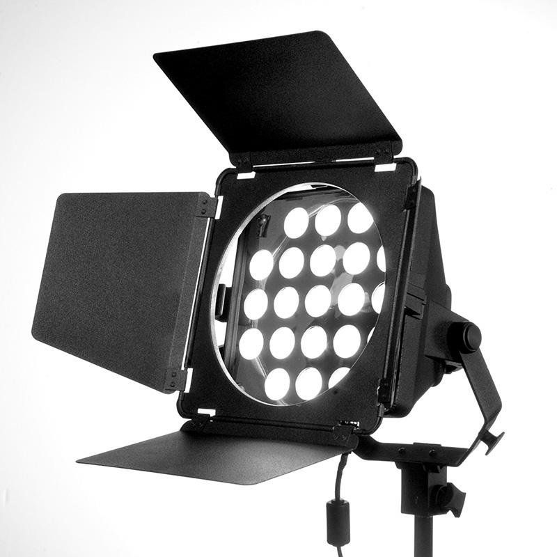 Equipement puissant universel avec lampes fluorescentes 5500K. En raison de sa puissance d'éclairage élevée, il est parfait pour presque tous les types de prise de vue vidéo, ainsi que pour la photographie fixe. L'ensemble comprend des boîtes à lumière qui fonctionnent uniquement avec des luminaires fluorescents.