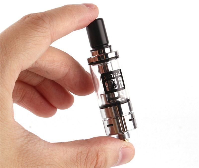 5ème place - un appareil sans entretien avec un débit d'air inférieur configurable. Une puissance suffisamment élevée fournit une vapeur saturée tout au long de la journée avec une utilisation moyenne. Le corps est en aluminium, le flacon est coloré. L'avantage du modèle est la facilité de ravitaillement.Il est nécessaire de déplacer le couvercle avec l'embout buccal dans le sens de la flèche et de verser du liquide dans le trou. En changeant l'évaporateur à temps, vous pouvez fumer en permanence. Un ressort est installé sur un connecteur de 5 mm de long avec un filetage à 10 tours. La capacité du réservoir de taille moyenne est de 5 ml. Il y a un indicateur de couleur indiquant le niveau de charge. Le colis contient un tankomizer, un pack batterie, deux évaporateurs, des pièces détachées, un câble. L'électronique de l'appareil protège les évaporateurs remplaçables contre les courts-circuits et les dommages du secteur.