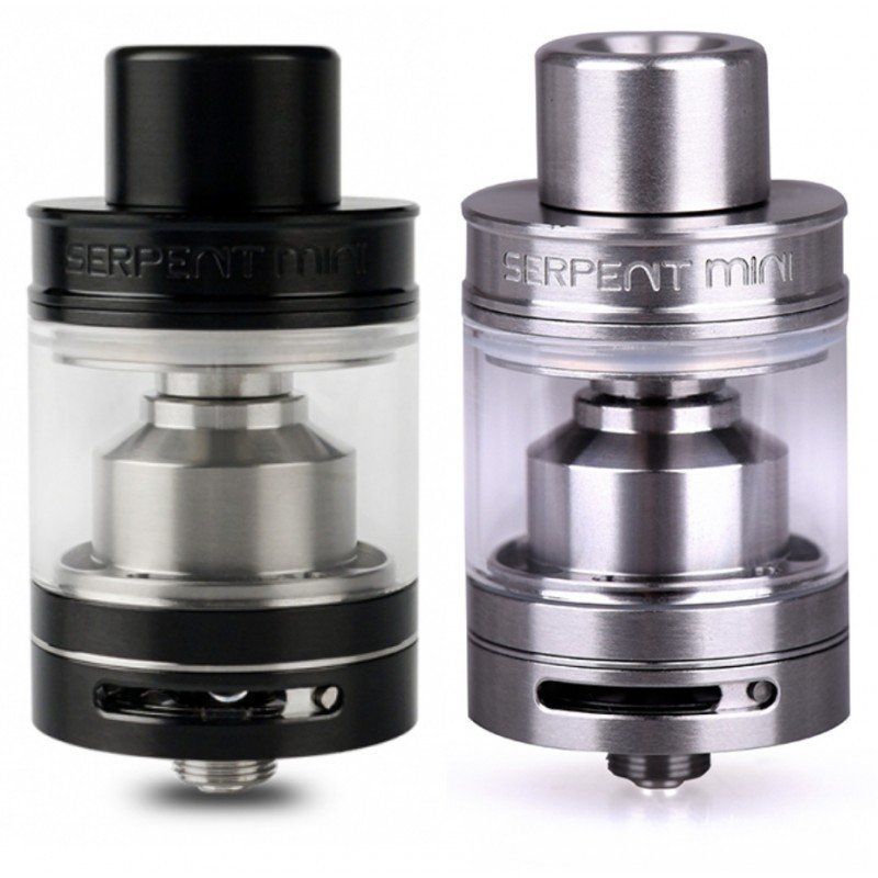 Le trio de tête est ouvert par Serpent mini 22mm. Le réservoir est produit dans des couleurs brillantes argentées et noires. Une grille d'aération de 4 mm est intégrée à la base de l'appareil.À travers les anneaux, les conduits d'air inférieurs sont régulés, à travers lesquels l'alimentation en vapeur souhaitée est obtenue. Même les débutants peuvent faire du bobinage, car la base est constituée de deux crémaillères installées de manière opposée. L'anneau supérieur est responsable de la puissance d'écoulement du mélange de vapeur. L'évaporateur est équipé d'une telle fonction. Le couvercle est gravé, ce qui vous permet d'ouvrir le couvercle sans aucun problème. Serpent mini a un drip tip en acier. Cependant, il peut être remplacé par un 510 standard, car le gadget dispose d'une prise standard. Le matériau du flacon est du verre Pyrex durable, qui peut résister à une exposition à long terme au liquide à l'intérieur du flacon.