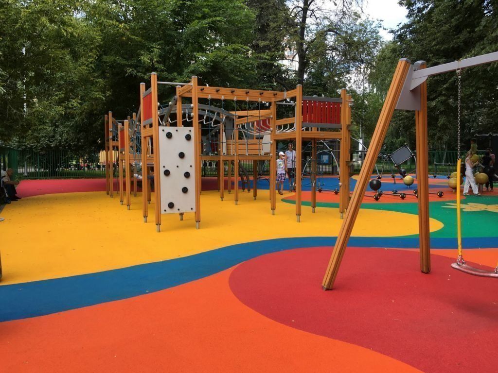 Les créateurs de cet espace de jeu ont essayé de faire en sorte que les enfants s'amusent au profit de leur développement.Les complexes de jeux prévoient l'entraînement de l'endurance, du courage, de la motricité, de la force physique, développent la pensée logique et l'ingéniosité, l'imagination et la dextérité. Les plus grands seront ravis de la skate zone installée sur le territoire. Ici, vous pouvez perfectionner vos compétences en exécutant diverses astuces sur une planche à roulettes ou un vélo. Il y a aussi un mur d'escalade pour les écoliers sous la forme de cubes spéciaux avec des crochets multicolores sur le site. Les enfants plus âgés peuvent s'y essayer et pratiquer leur capacité à conquérir des sommets.