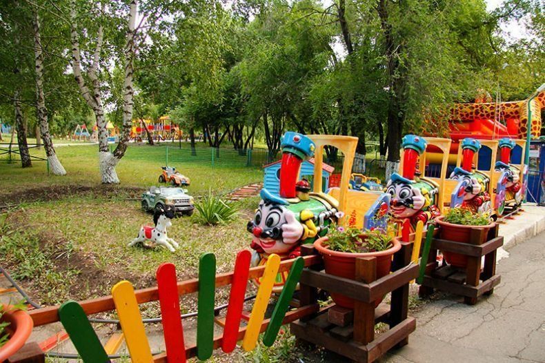 Sur le territoire du parc, il y a un complexe de rondins et un navire en bois. Les enfants peuvent monter sur le chemin de fer et le train pour enfants. Ces divertissements sont représentatifs de l'ancien modèle, mais en termes de plaisir et de sécurité, ils ne sont en rien inférieurs aux nouvelles installations.