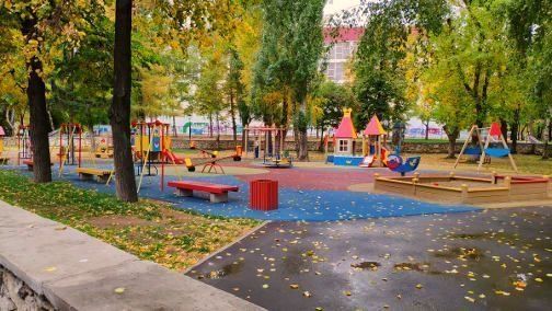 Dans les aires de jeux, il y a une aire de jeux moderne, qui ravira les enfants avec la présence de balançoires et de toboggans. Et un zonage pratique ne vous permettra pas de vous écarter des itinéraires pour enfants. Soit dit en passant, la couverture du site a été récemment mise à jour.