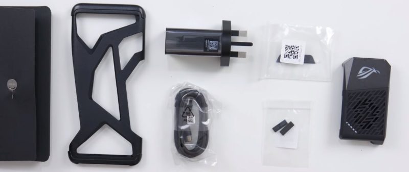 Le smartphone de jeu est livré dans une boîte noire mate, qui a une forme très inhabituelle. À notre connaissance, dans la boîte, en plus de l'appareil, il y aura un système de refroidissement externe AeroActive Cooler II et un Aero Case.Le kit comprendra également un bloc de charge, un câble de chargeur avec un enroulement en tissu, des instructions, une garantie et un trombone pour ouvrir l'emplacement de la carte SIM.