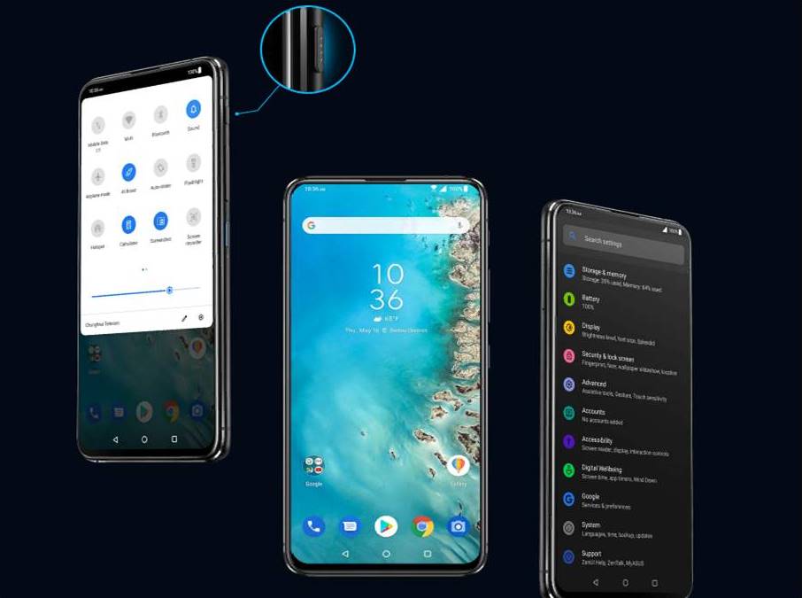 En conséquence, il s'avère que j'ai décidé à ma manière de réaliser la tendance moderne du manque de cadres autour de l'écran, en supprimant le «sourcil» et la découpe du panneau avant et en créant une caméra rotative. Il s'agit d'un développement personnel unique d'Asus, qui n'a pas utilisé la technologie éprouvée d'autres marques (OPPO, Vivo et OnePlus) sous la forme d'une caméra frontale rétractable.