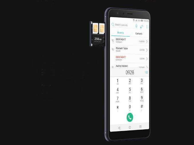 Le plateau pour les cartes SIM et une carte mémoire est situé sur le bord gauche. Pour l'ouvrir, il faut, comme dans l'iPhone, appuyer avec une aiguille pointue ou un cure-dent dans un trou spécial à côté du compartiment. Les emplacements Nano-SIM sont situés les uns à côté des autres et Micro-SD se trouve en dessous.