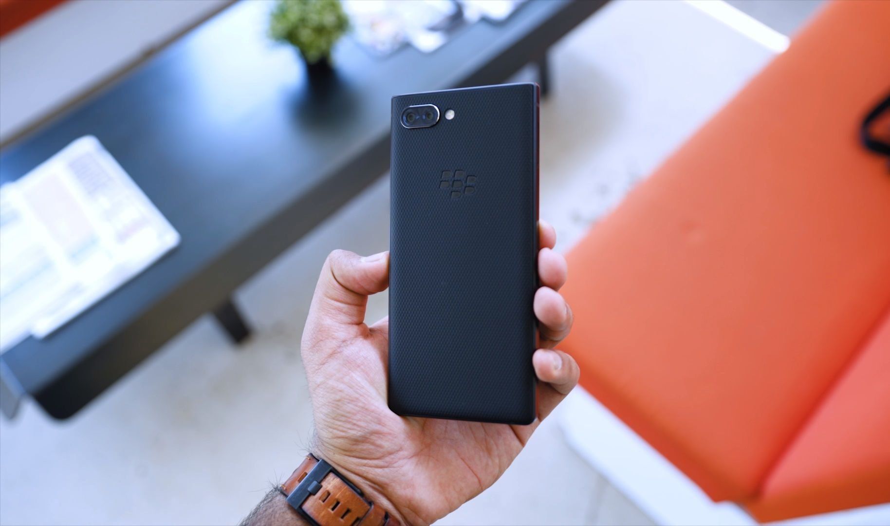 Au dos du boîtier se trouvent 2 caméras avec double flash LED. Les boutons d'alimentation et de volume sont à droite. Il existe également un bouton BlackBerry Convenience Key qui lance Google Assistant par défaut, mais peut être reconfiguré pour lancer rapidement des applications. Certains programmes sont personnalisés et exécutés automatiquement, selon le type d'appareil connecté.