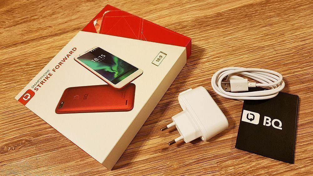 Lors de l'achat d'un BQ-5512L Strike Forward, le futur propriétaire reçoit un smartphone emballé dans une boîte en carton dense de petite taille, qui montre une photo de l'appareil lui-même et répertorie les données sur les caractéristiques techniques. En plus de l'appareil lui-même, l'emballage de l'appareil comprend un adaptateur secteur, un câble USB, un manuel d'utilisation et une carte de garantie.