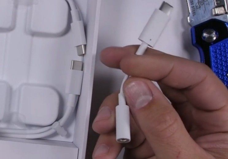 Le kit est livré avec une enveloppe avec notice, un trombone, un chargeur. A la prise du chargeur de type américain, il vous faudra un adaptateur pour l'adapter aux prises russes. Il existe un adaptateur usb vers type-c afin de connecter des écouteurs ordinaires, car il n'y a pas de prise jack 3.5 standard pour les écouteurs.