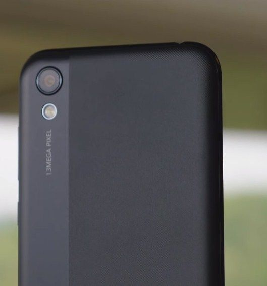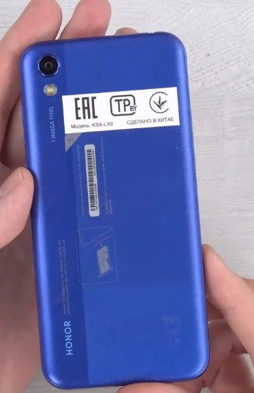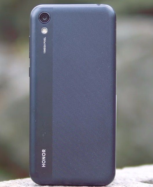 Honor 8S peut être acheté en trois couleurs : bleu, noir et or. Le panneau arrière est en polycarbonate et présente une surface multicouche à double texture. La couverture est très belle et intéressante : le côté droit est en plastique mat rugueux et le côté gauche a une finition lisse et brillante, sur laquelle la caméra arrière est située dans la zone supérieure. Sous l'appareil photo se trouve un flash LED et sous le logo de l'entreprise.