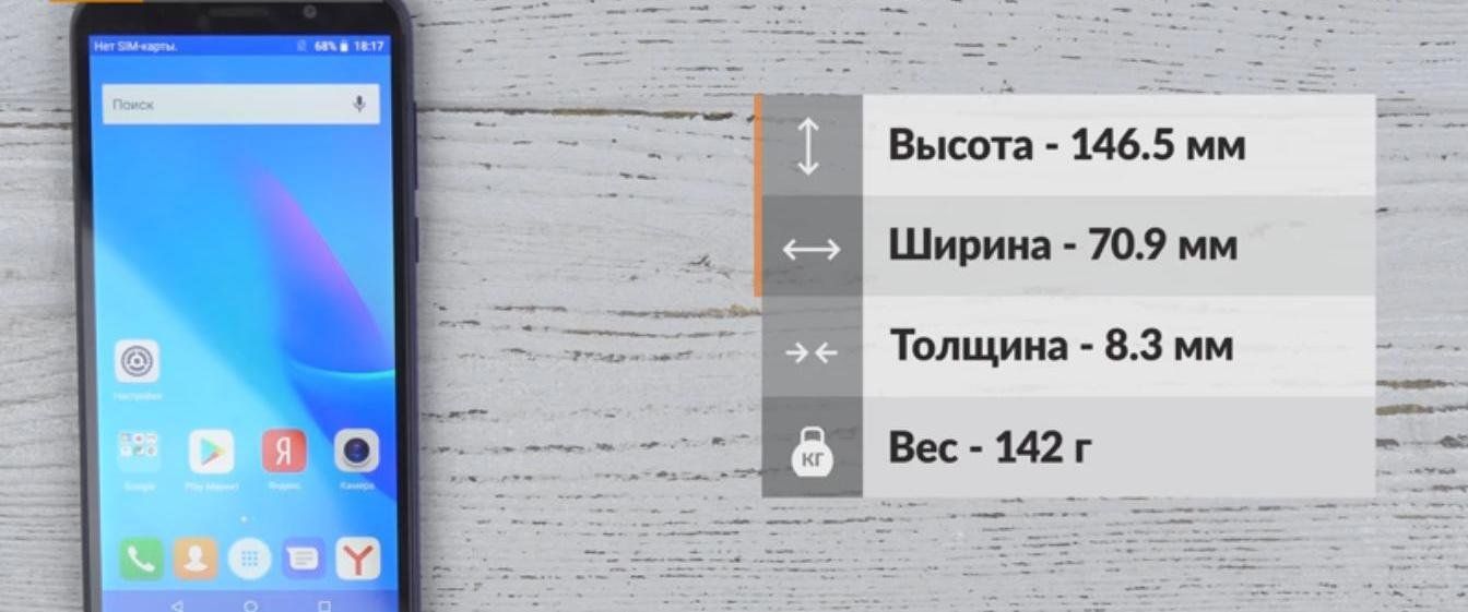 L'avant du téléphone est un écran allongé avec des lunettes de taille assez standard, qui ne diffèrent guère des autres représentants de la gamme budgétaire. Au-dessus de l'écran se trouve une caméra selfie, un flash, des capteurs de proximité et de lumière, un haut-parleur commun (conversationnel et multimédia), un indicateur qui enregistre les événements. Au bas du panneau avant, l'inscription est le nom du fabricant Huawei.