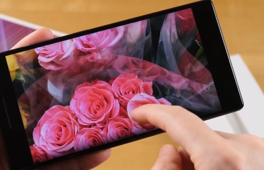 La résolution d'écran du smartphone est de 2560 par 1440 pixels. L'image est impeccable, lisse, sans pixellisation. À un angle de distorsion de l'image n'est pas remarqué.
