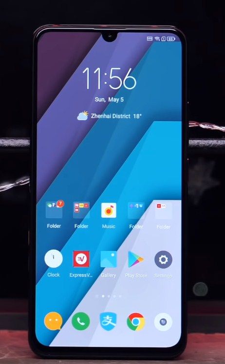En haut au milieu de l'écran se trouve une encoche en forme de goutte d'eau pour la caméra frontale. Au-dessus de la caméra se trouvent un haut-parleur, des capteurs de lumière et de proximité. Il y a 4 caméras arrière installées sur le panneau arrière, où 3 forment un bloc et 1 est située juste en dessous. Le flash et le trou pour l'autofocus laser sont situés sur le côté droit des appareils photo.