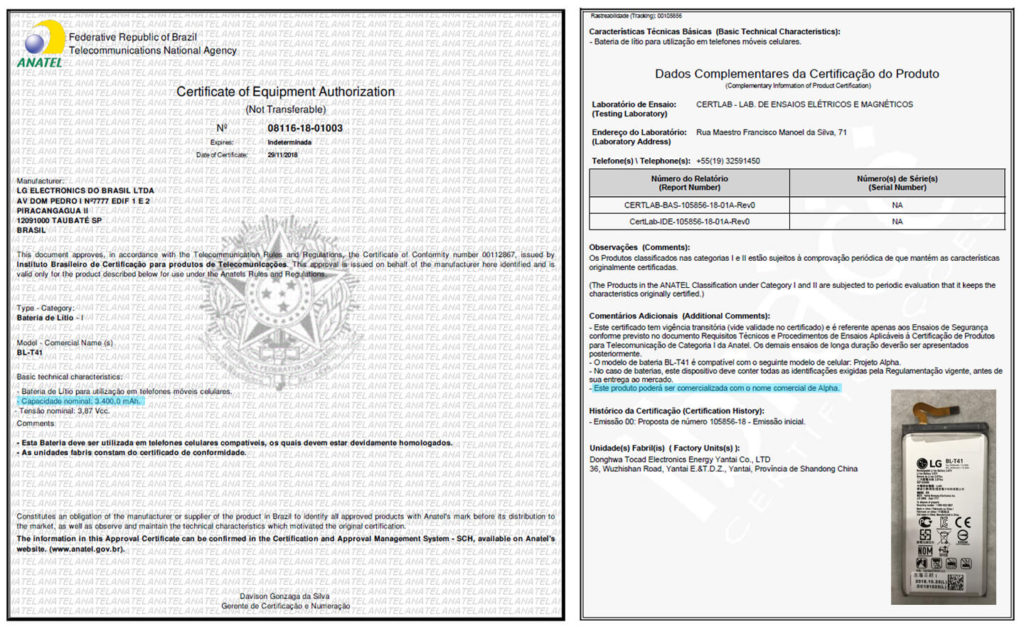 Sur le net, vous pouvez trouver des photos de documents sur le test d'une batterie pour un smartphone d'un fabricant sud-coréen. Ils indiquent que le LG G8 ThinQ aura une batterie de 3400 mAh. Bien que de nombreuses spécifications indiquent un volume de 4000 mAh.