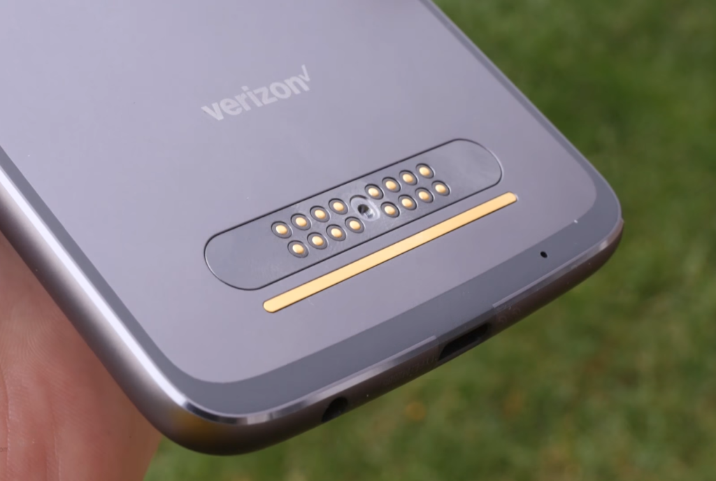 Le bloc de contact Moto Mods Connector est situé au dos du téléphone, c'est à lui que seront rattachées les surcouches achetées par l'utilisateur.