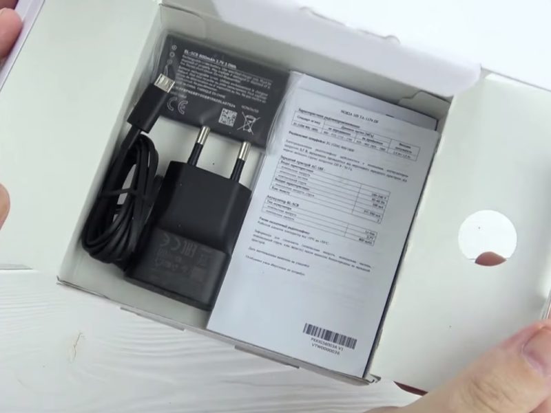La boîte d'emballage contient de brèves caractéristiques, des photographies en couleur du modèle.Au déballage, on retrouve l'équipement standard : un smartphone, un chargeur avec un câble, une batterie amovible et la documentation qui l'accompagne (manuel d'utilisation, carte de garantie, etc.).