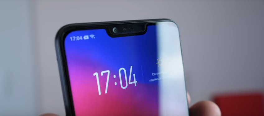 Il y a une découpe sur le panneau avant de l'appareil. Il abrite commodément les capteurs, l'écouteur et la caméra selfie.