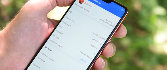 En fonctionnement, le smartphone OPPO F7 64GB est intelligent et réactif. Construit sur un processeur moderne Media Tek Helio à 8 cœurs avec un accélérateur vidéo P23 Mali-G71 MP2. RAM - 4 Go et 32 Go - mémoire intégrée, qui peut être étendue avec une carte jusqu'à 256 Go. La version shell moderne ColorOS 5 est utilisée, elle est basée sur Android 8.1, équipée d'une intelligence artificielle.