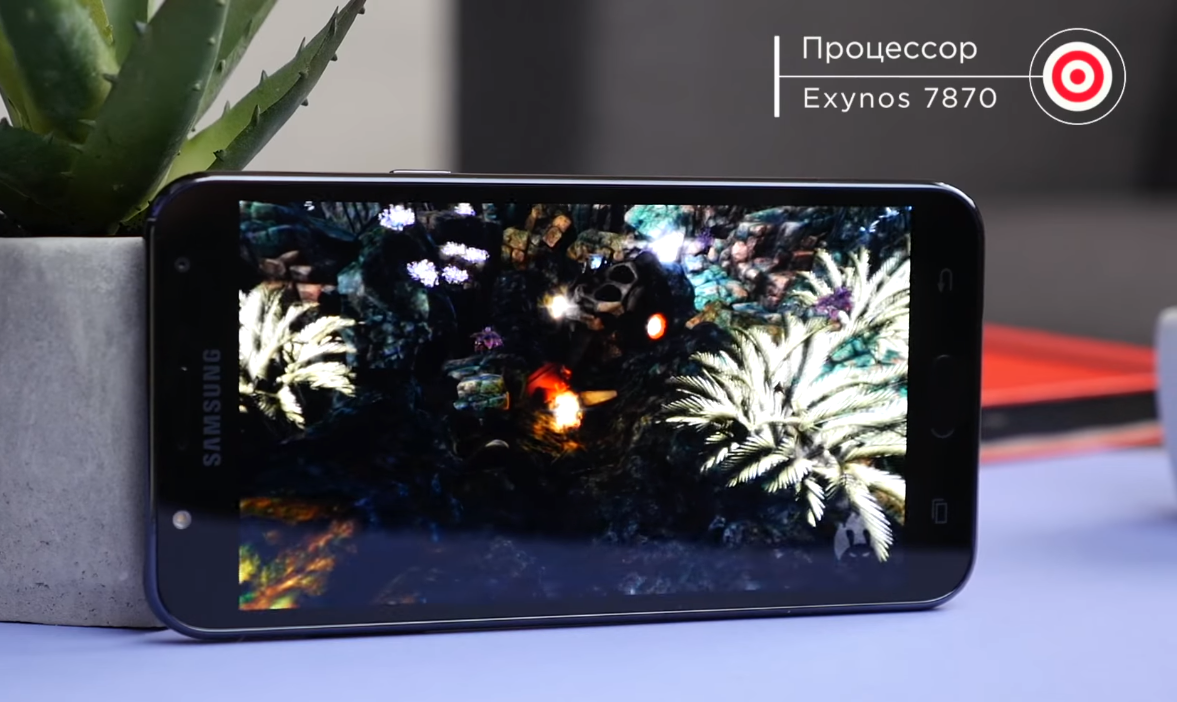 Comme mentionné ci-dessus, toutes les lacunes peuvent être bloquées par un plus. Sur le fond : les performances du gadget ne sont pas assez mauvaises. Il existe un processeur à huit cœurs Exynos 7870 Octa, avec une fréquence de 1,6 GHz. Type de carte mémoire - MicroSD (TransFlash). La mémoire intégrée du téléphone est de 16 gigaoctets et la mémoire opérationnelle est de 2 gigaoctets. L'appareil prend également en charge les cartes mémoire jusqu'à 256 gigaoctets. C'est tout à fait suffisant pour les jeux actifs et la visualisation constante de clips vidéo.