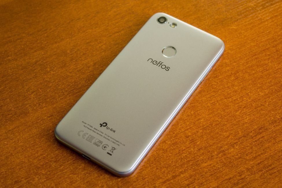 Un microphone supplémentaire pour la vidéo, un flash et un objectif de caméra arrière dans un cadre argenté. Il a l'air élégant. Le lecteur d'empreintes digitales et le logo de la marque Neffos se trouvent juste en dessous. La même inscription de la société TP-Link est affichée tout en bas de la coque du téléphone.