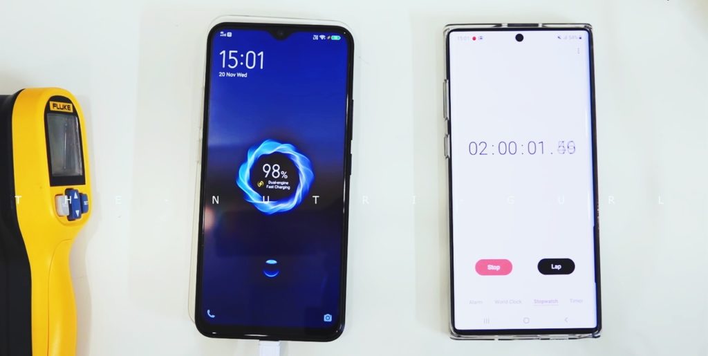 De plus, d'autres facteurs ont influencé la consommation de charge. Par exemple, la coque Funtouch permet d'économiser jusqu'à 10 %, et le système d'accélération du jeu 5 % supplémentaires.