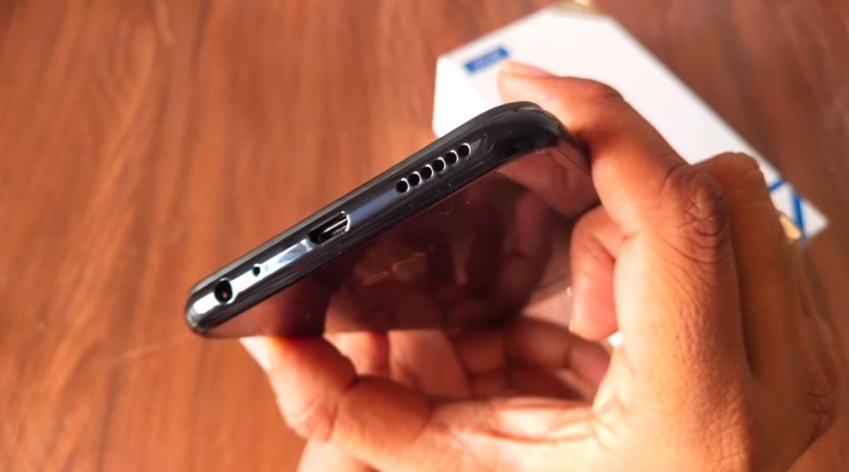 Les développeurs ont placé le port casque 3,5 mm, le port microUSB, le microphone principal et la grille du haut-parleur au bas de l'appareil.